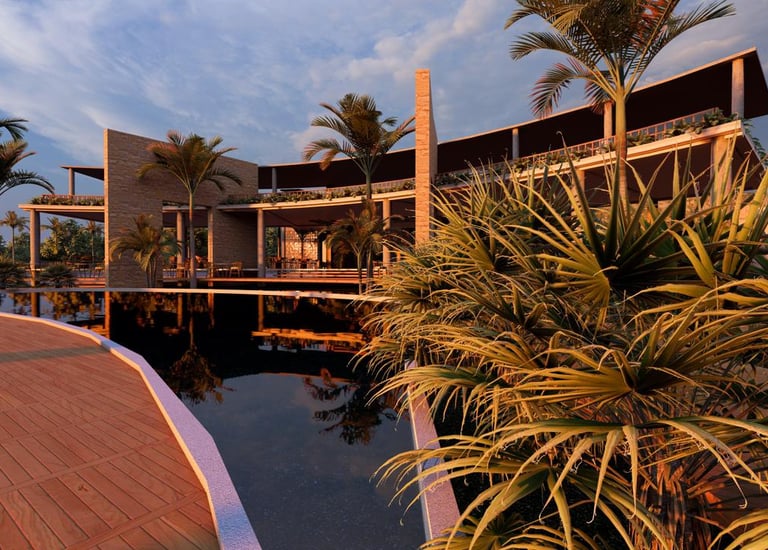 Diseño conceptual de un hotel en Monterrico, diseño enfocado en el confort ambiental.