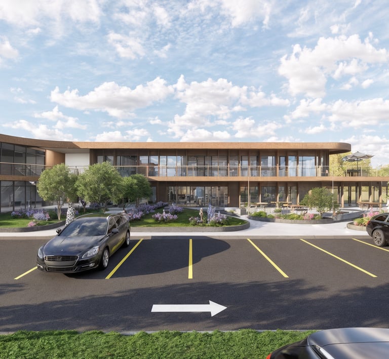 Diseño conceptual de plaza comercial y torres de vivienda en Jocotenan, Ciudad de Guatemala